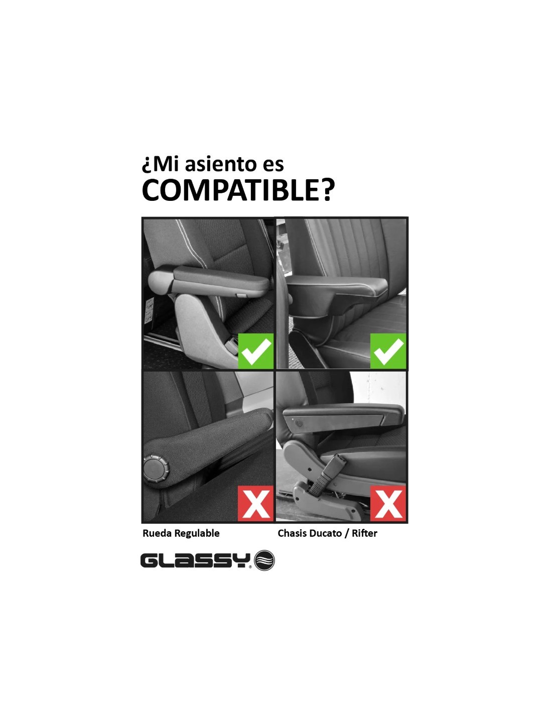Su diseño incluye una abertura inferior que permite el acceso a la ruleta de ajuste, manteniendo intacta la funcionalidad del reposabrazos original.